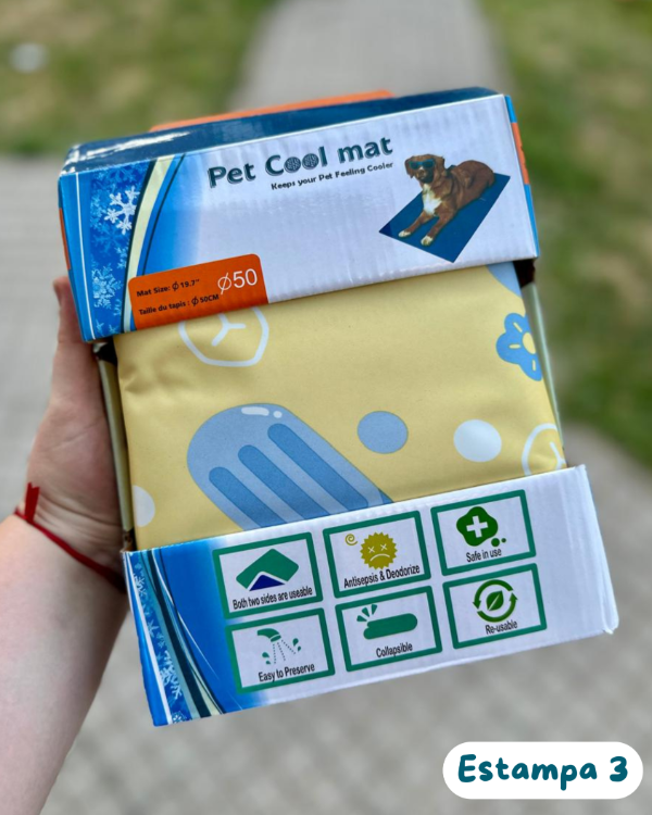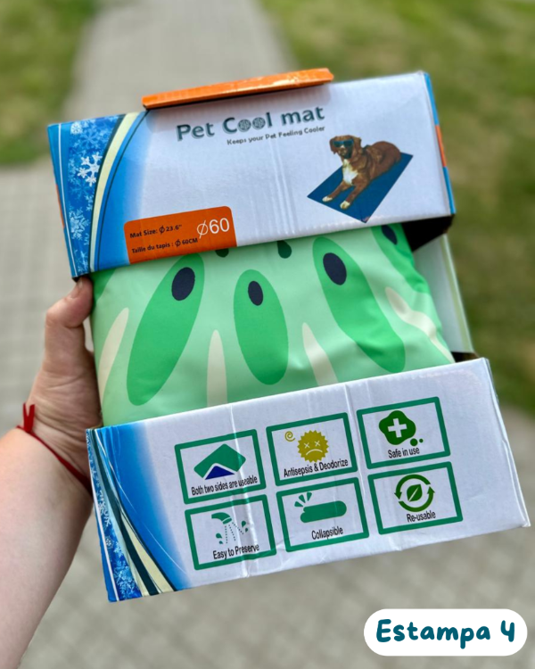 Actúa por la presión generada por el peso de su cuerpo. Funciona absorbiendo el calor que emana el cuerpo de la mascota al hacer presión sobre la manta, y lo disipa por las áreas no ocupadas. Ideal para mantenerlos frescos en el verano.